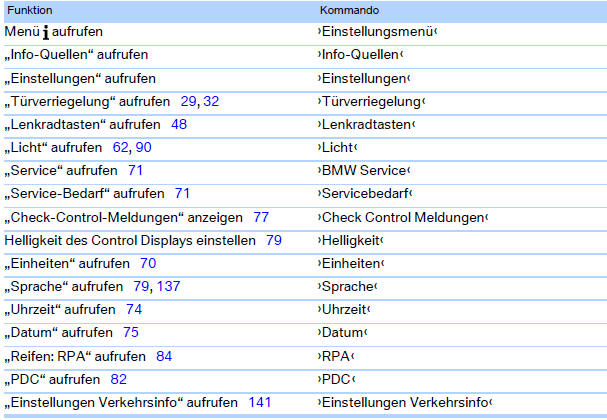 Anzeige aller im Fahrzeug verfügbaren Dienste.