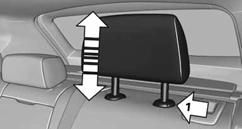 2. Taste drücken, Pfeil 1, und die Kopfstütze komplett herausziehen.